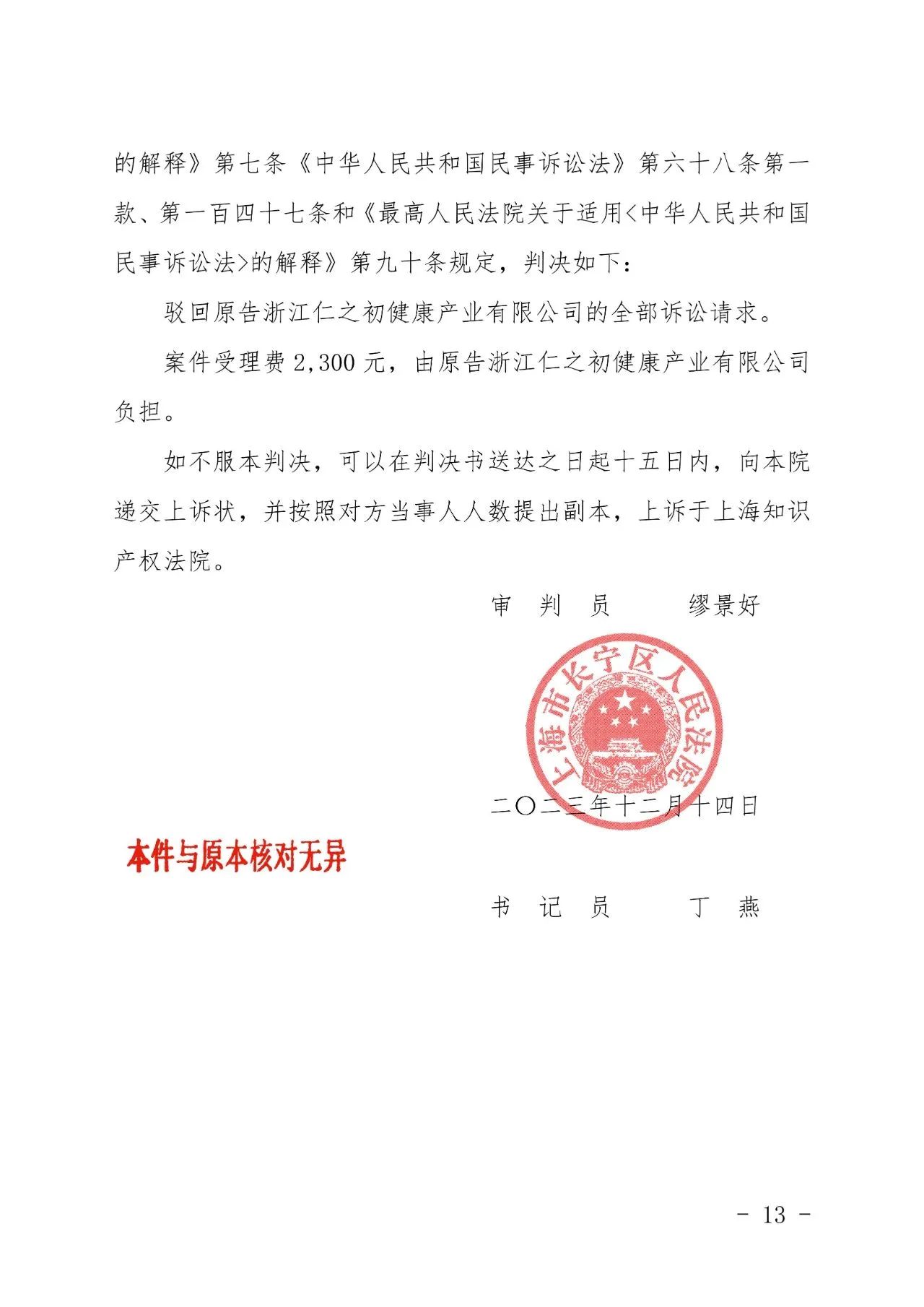 长沙辉知胜诉佳讯 | “仁之初健康”著作权及不正当竞争纠纷案,法院:驳回全部诉讼请求!